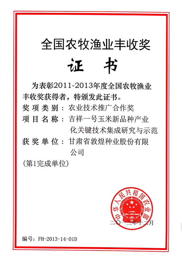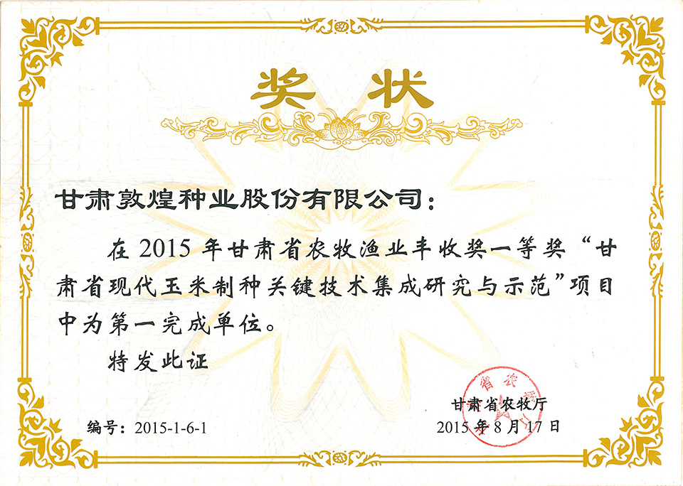 2015年甘肅省農(nóng)牧漁業(yè)豐收獎(jiǎng)一等
